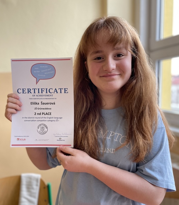 Obě žačky postupují reprezentovat naši školu do okresního kola Konverzační olympiády v anglickém jazyce.